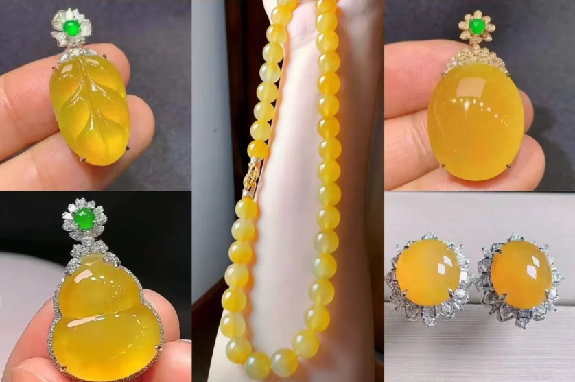 3.黄色翡翠:黄色翡翠简称 “黄翡”,颜色从浅黄色到深黄色不等,成因与红翡相似,也是由于铁元素的渗透形成的。黄翡的颜色温暖柔和,像阳光一样明媚,象征着财富和吉祥,优质的黄翡同样具有较高的价值。