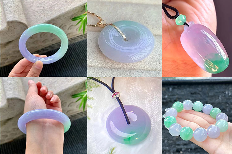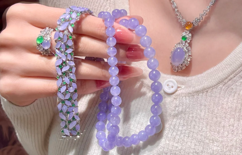4.紫色翡翠:紫色翡翠又称 “紫罗兰翡翠”,颜色从浅紫色到深紫色不等,有 “春带彩”(紫色和绿色并存)、“茄紫” 等品种。紫罗兰翡翠给人一种高贵典雅的感觉,深受女性消费者的喜爱,尤其是优质的紫罗兰翡翠,颜色浓郁均匀,透明度好,价格十分昂贵。